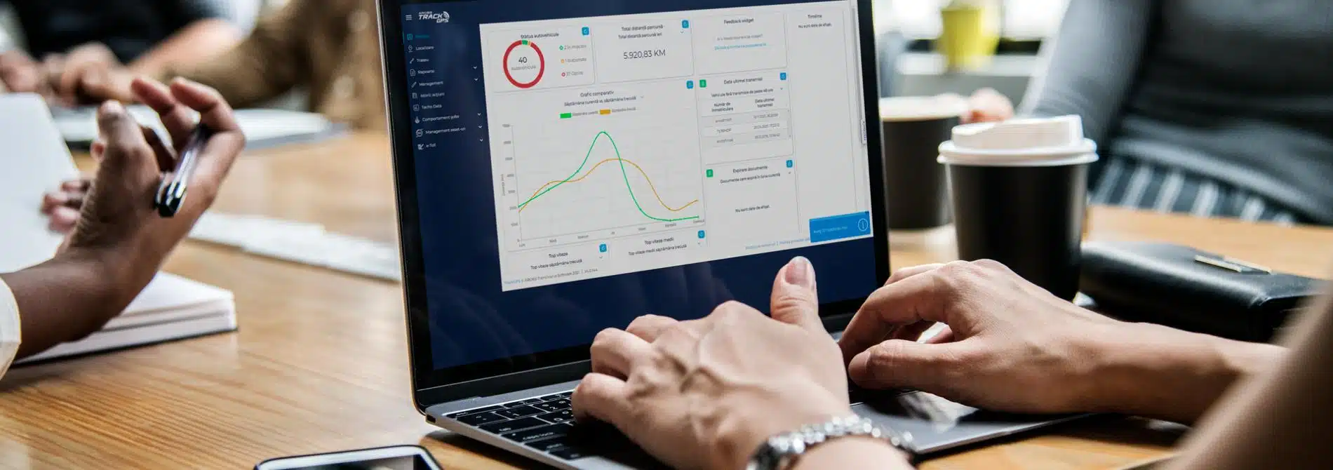Accesezi locația vehiculelor, generezi cele mai importante rapoarte, analizezi, compari viteza cu care vehiculele s-au deplasat și verifici cantitatea de combustibil consumat.